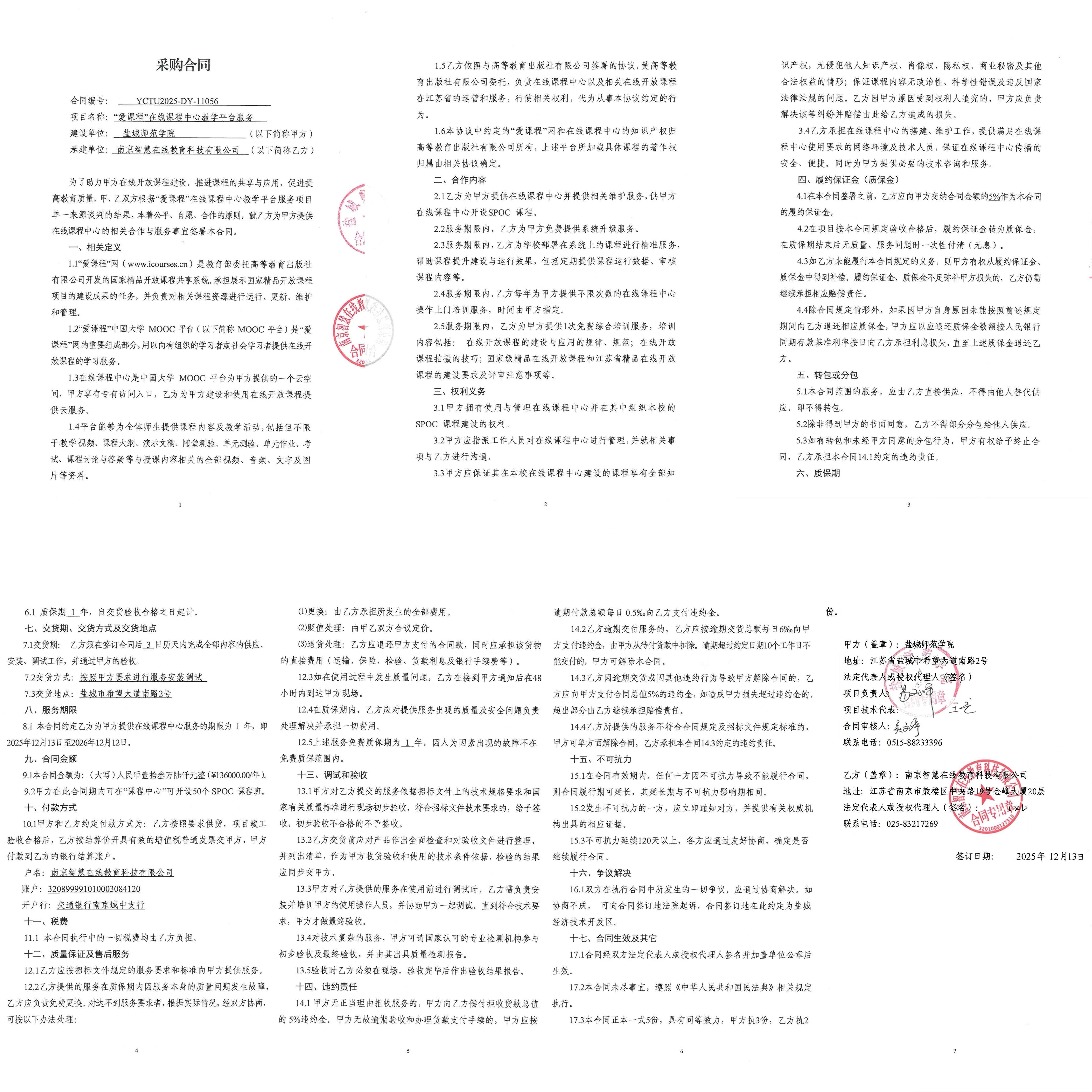 YCTU2025-DY-11056“爱课程”在线课程中心教学平台应用服务合同公示